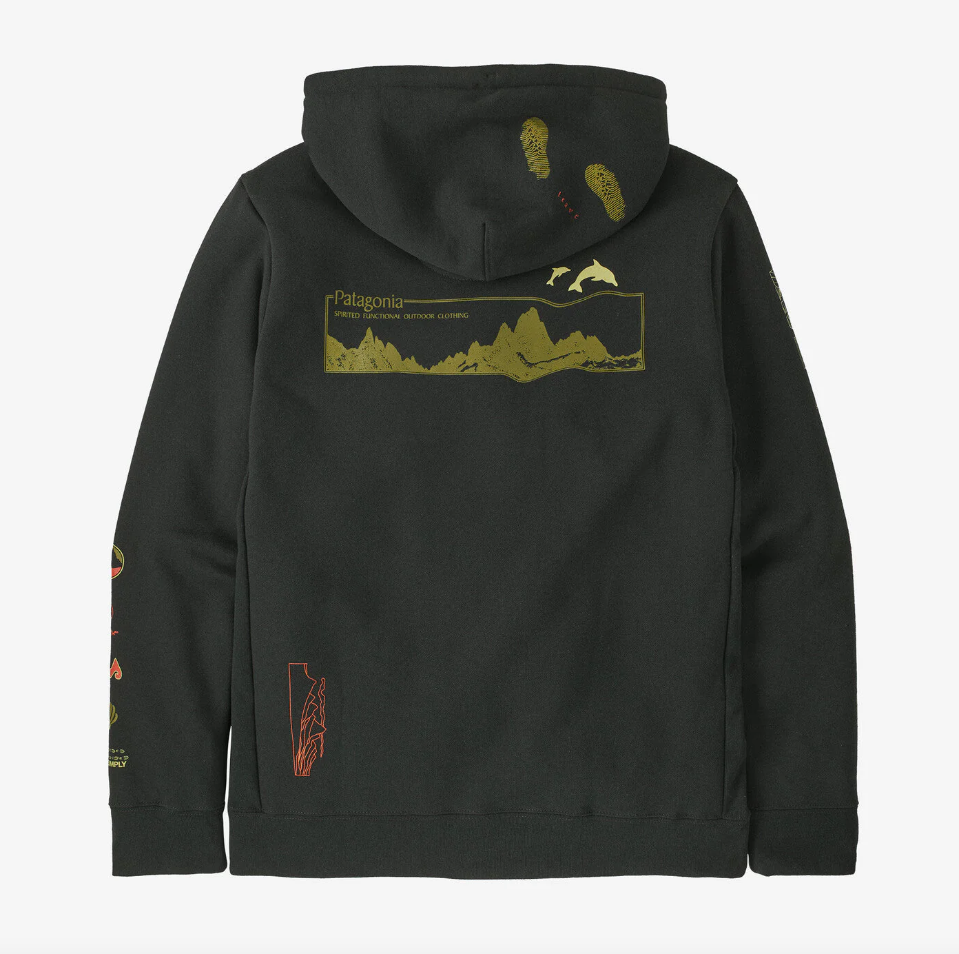Long Way 'Round artwork takes us back graphically. Look for our circa '95 oval logo; the cult-favorite Rhythm™ design for climbing clothes; an early surfboard graphic; our Water Girl® shell and more. We screen printed the graphic on our Long Way 'Round Uprisal Hoody, which is made with 100% recycled knit fleece with a brushed interior and natural stretch. By utilising fabric scraps and recycled bottles, this garment reduces our reliance on virgin raw materials. Made in a Fair Trade Certified™ factory.
