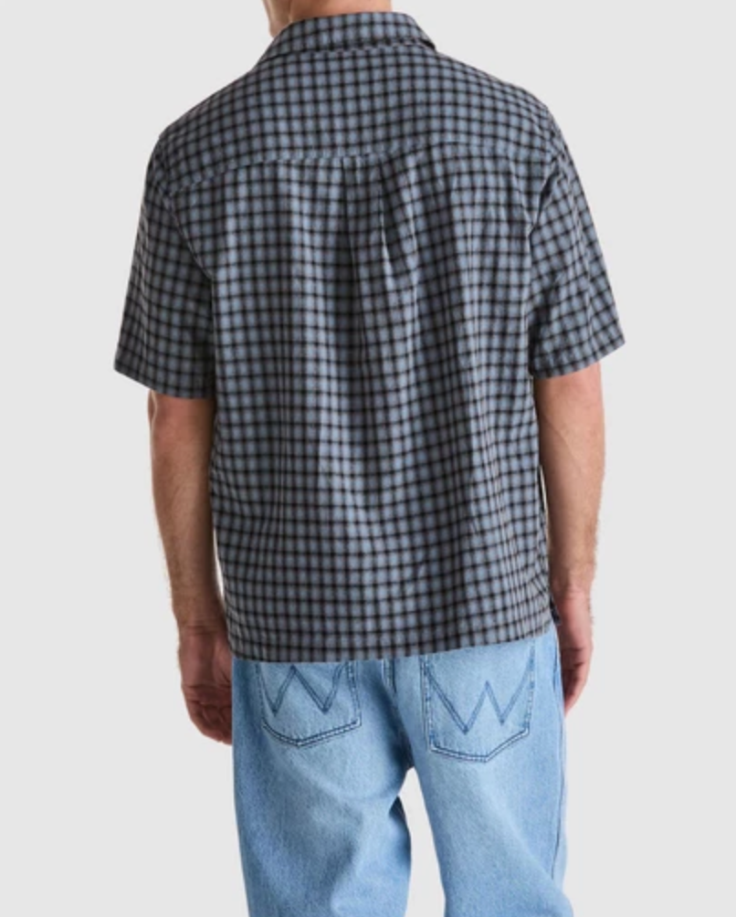 The Boxcar Shirt is a modernised take on the traditional button down shirt. Crafted in a textured check cotton, the Boxcar shirt is a relaxed boxy fit, short sleeve, button up style shirt.